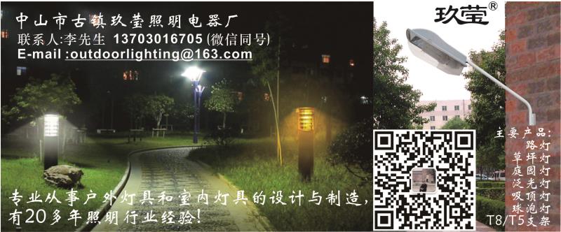 我公司专业生产室内外照明灯具及配件,主要户外灯具产品有:不锈钢灯, 壁灯, 铝质射灯, 草坪灯,庭园灯,埋地灯, 水下灯,庭园灯,路灯,泛光灯,投光灯等;室内灯具有:吸顶灯,T5荧光灯支架,节能灯等;灯具配件有:荧光灯电感镇流器,电子镇流器,金卤灯/钠灯电感镇流器,触发器,补偿电容,灯具用五金及塑料组件/配件........